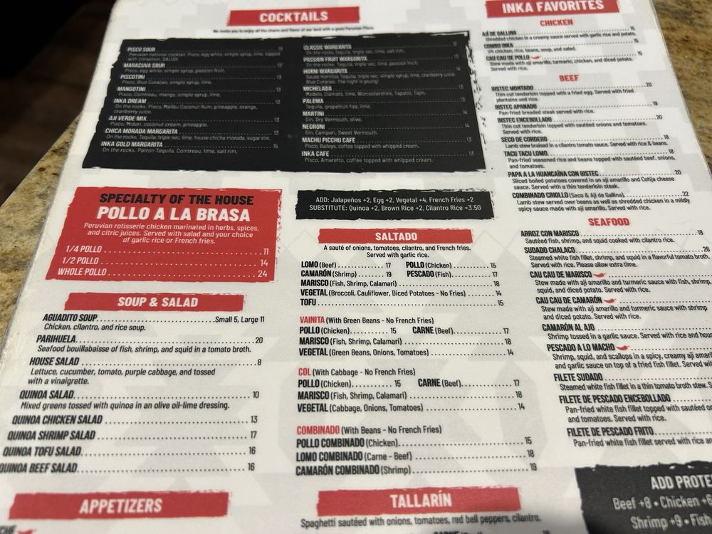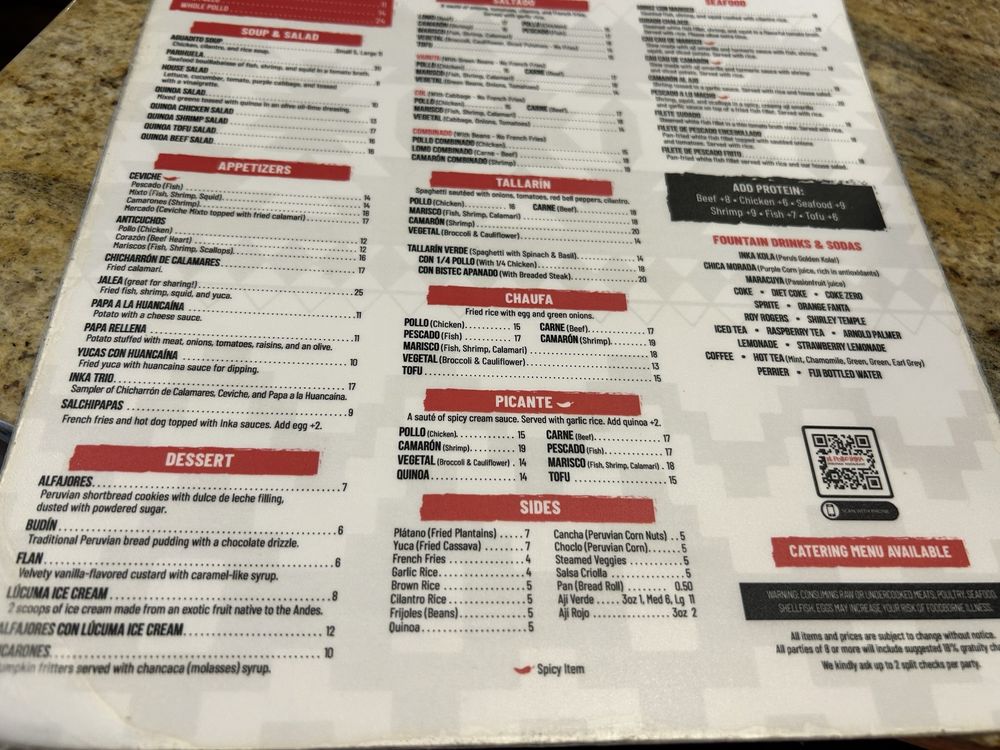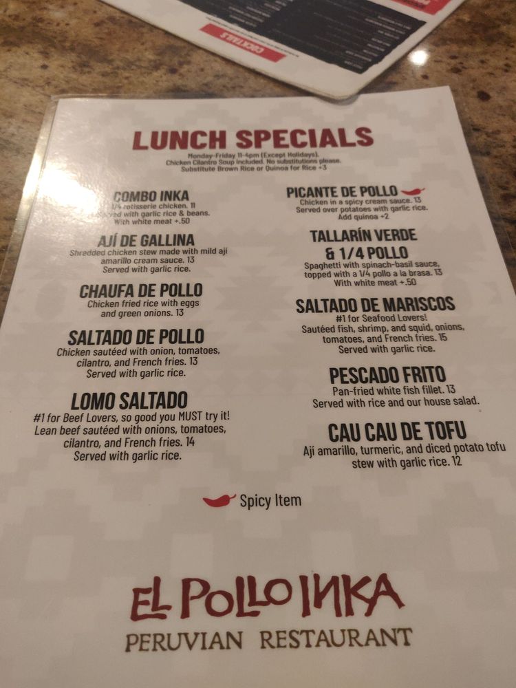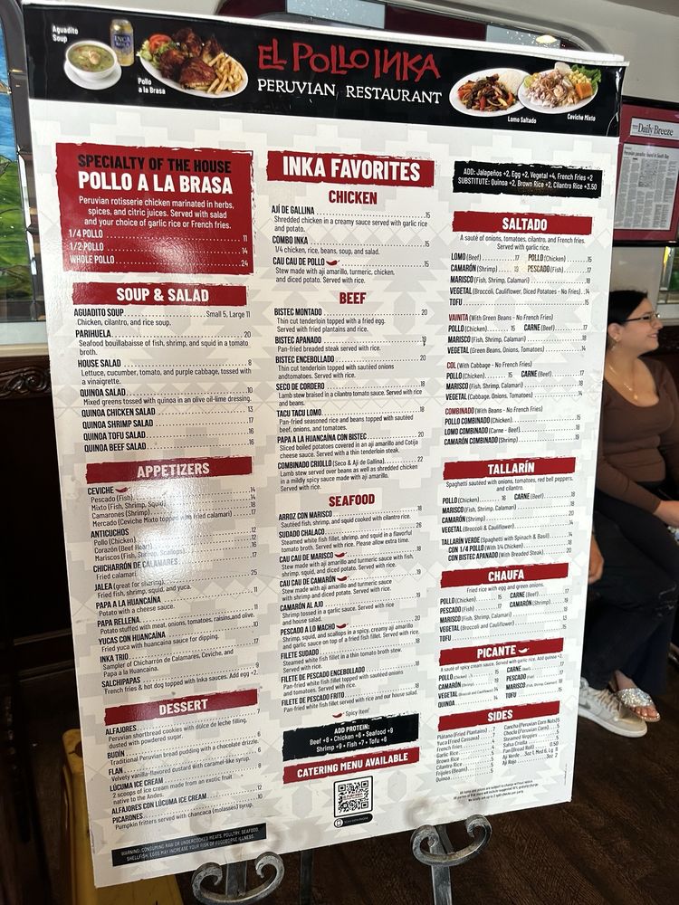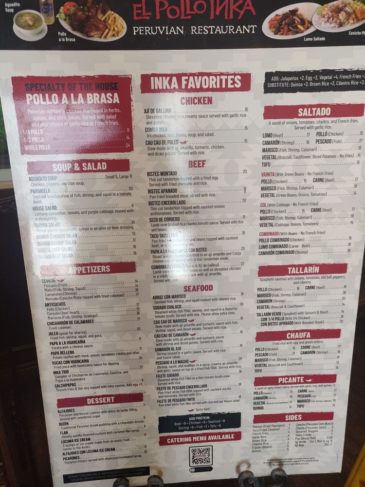 El Pollo Inka is a Peruvian restaurant that offers a variety of Latin American dishes, including Pollo a la brasa, lomo saltado, papa rellena, and ceviche. Customers praise the flavorful meals and excellent service at this location in Torrance, CA. The menu includes vegan and vegetarian options, making it a great choice for a diverse group of diners. The cozy atmosphere, full bar with happy hour specials, and outdoor seating add to the overall dining experience. With easy reservation options, delivery, and takeout, El Pollo Inka is a convenient choice for those looking for delicious Peruvian cuisine. Make sure to try the complimentary rolls and Aji sauce for an extra burst of flavor. Overall, El Pollo Inka is a must-visit spot for anyone craving authentic Peruvian dishes in Southern California.